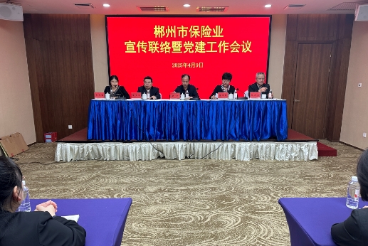 2025年4月9日,郴州市保险业宣传联络暨党建工作会议在郴州市国际大酒店成功召开,郴州市保险行业协会驻郴31家会员公司办公室主任、联络员及协会全体工作人员参加会议。会议由协会秘书长董东玲主持。