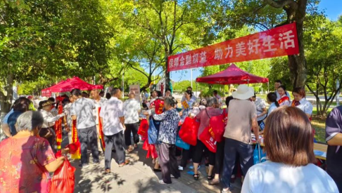 郴州中支组织志愿者在永兴县洋塘乡农贸市场开展集中宣传,通过有奖问答、小游戏等互动环节,宣传金融产品适当性管理、风险防范、反诈知识及金融支持民生举措,现场氛围热烈,群众参与积极。